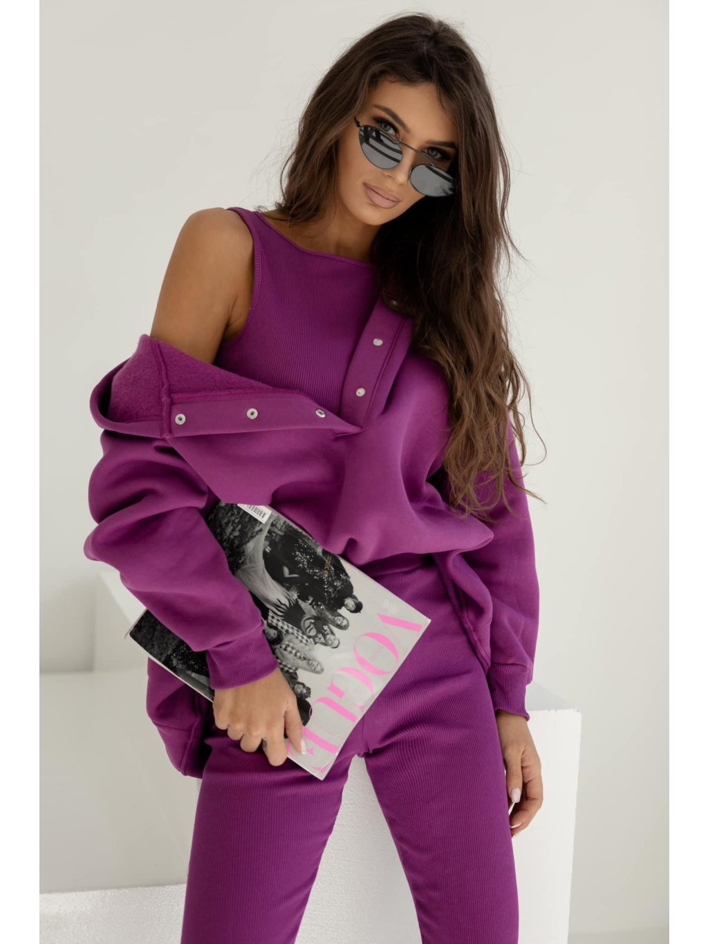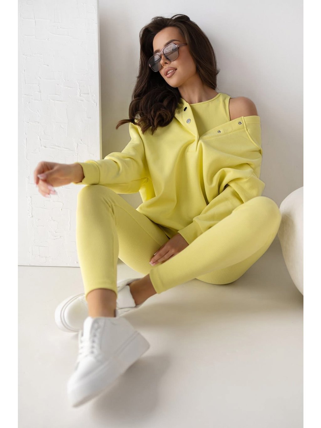 Sada Sweetly Gently 3v1 melange beige se skládá z mikiny, topu a legín s žebrovanou úpravou. Tento model bude perfektní pro každodenní použití díky tomu, že je vyroben z příjemné a pohodlné látky. Noste společně nebo samostatně.