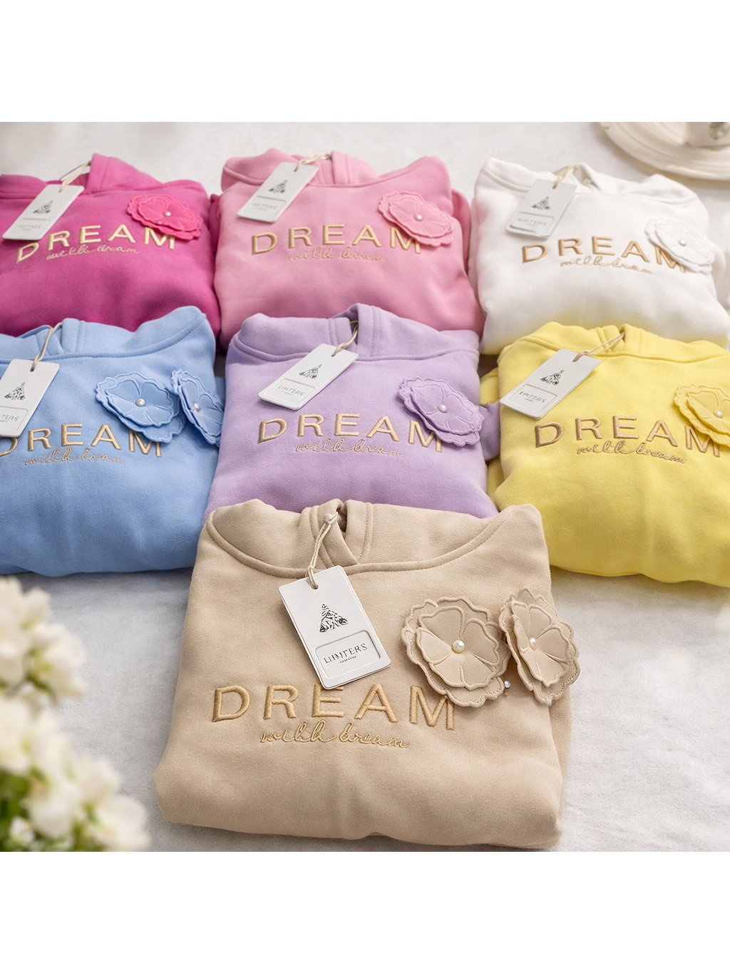 Stylová a zároveň maximálně pohodlná mikina v jemném růžovém odstínu s výraznou 3D aplikací květů na přední straně. Decentní zlatý nápis dodává modelu luxusní nádech a dělá z ní nepřehlédnutelný kousek do každodenního outfitu.