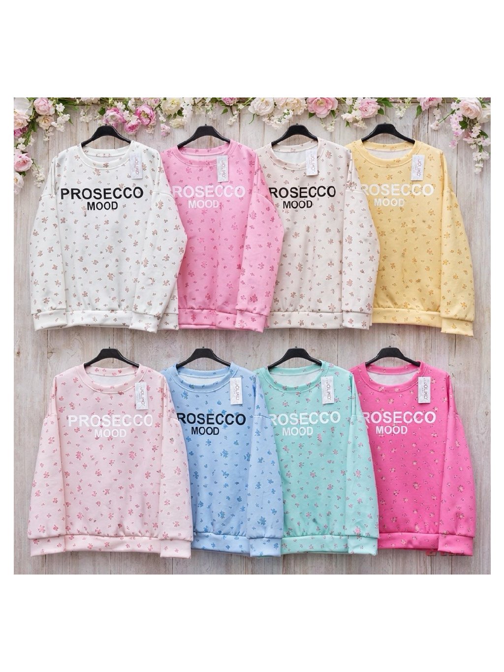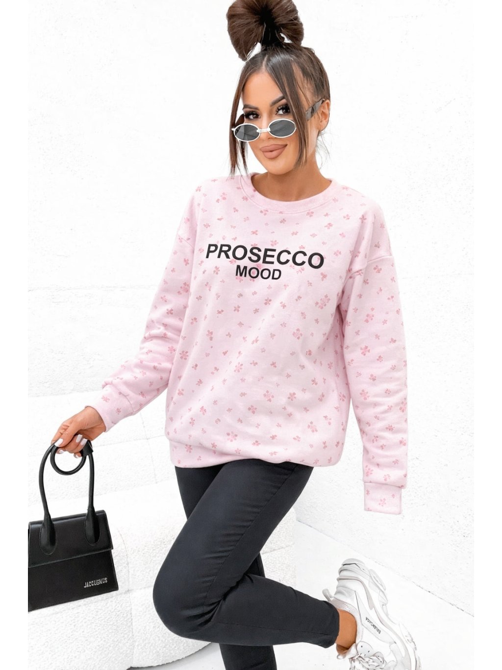 Stylová dámská mikina v jemném světle růžovém odstínu s celoplošným květinovým potiskem a nápisem PROSECCO MOOD. Pohodlný, lehce oversized střih zaručuje maximální komfort při nošení. Mikina je ideální na každodenní outfit – skvěle se kombinuje s legínami, džínami i sportovními kalhotami.