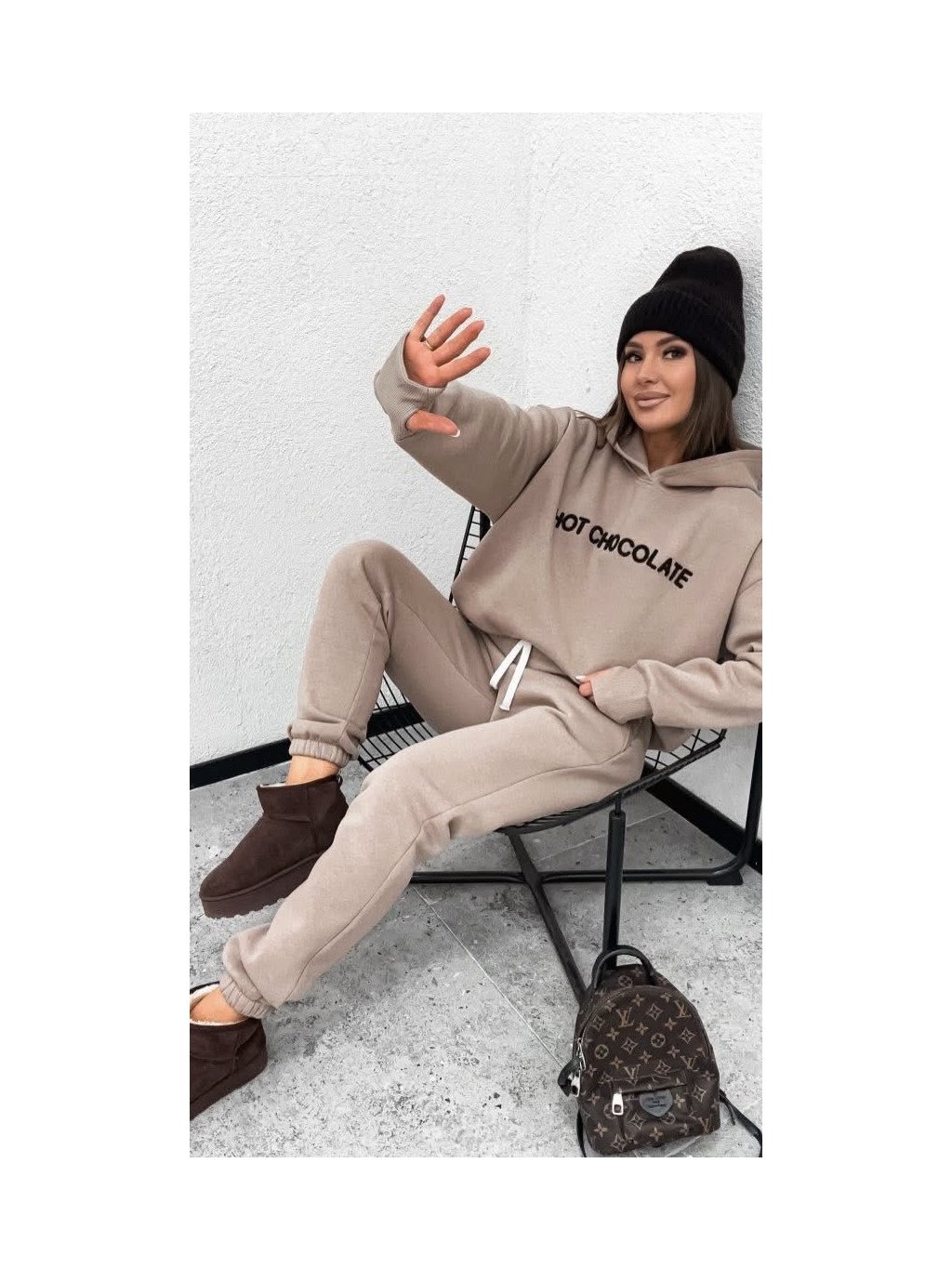 Stylová dvoudílná tepláková souprava v moderním oversize střihu, ideální na volný čas, domácí pohodu i každodenní nošení. Mikina s výrazným HOT Chocolate dodává celému outfitu trendy vzhled. Měkký, hřejivý materiál je maximálně pohodlný a příjemný na těle.
