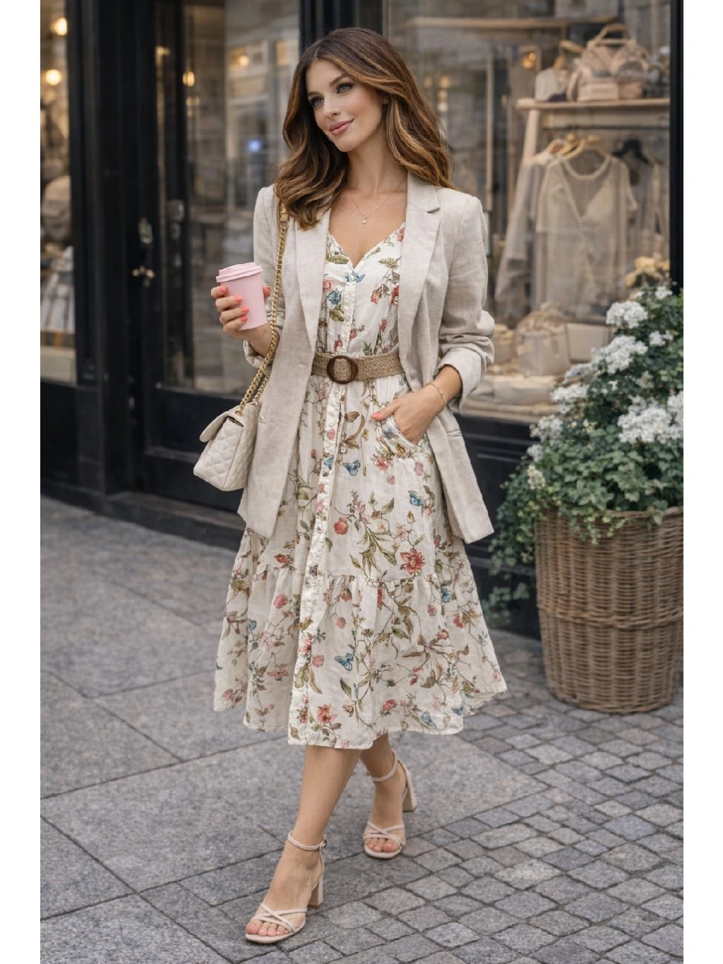 Lehké a ženské šaty, které si zamiluješ na první oblečení. Romantický květinový vzor v kombinaci s volně splývavým střihem vytváří elegantní, ale zároveň pohodlný outfit ideální do města, na dovolenou i do kavárny.