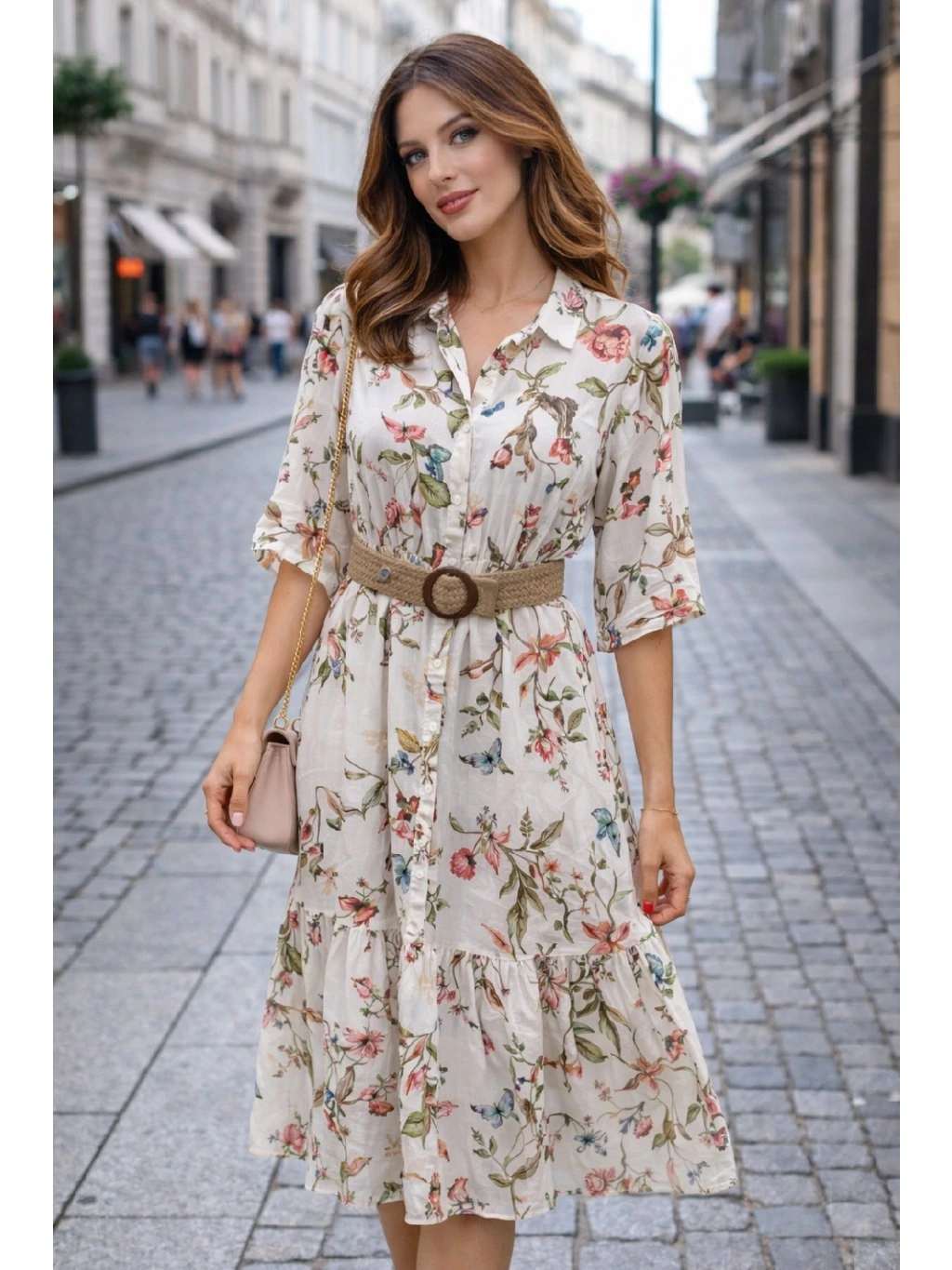 Šaty mají košilový střih s límečkem, zapínání na knoflíky a součástí je stylový pásek, který krásně zvýrazní pas. Díky vzdušnému materiálu jsou příjemné na nošení i v teplejších dnech.