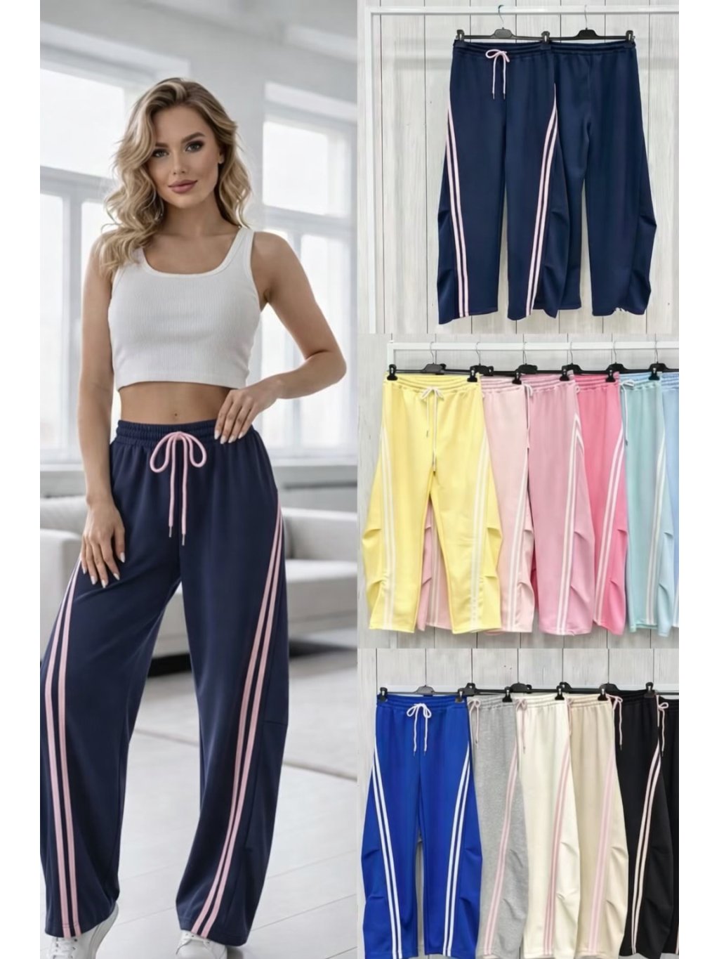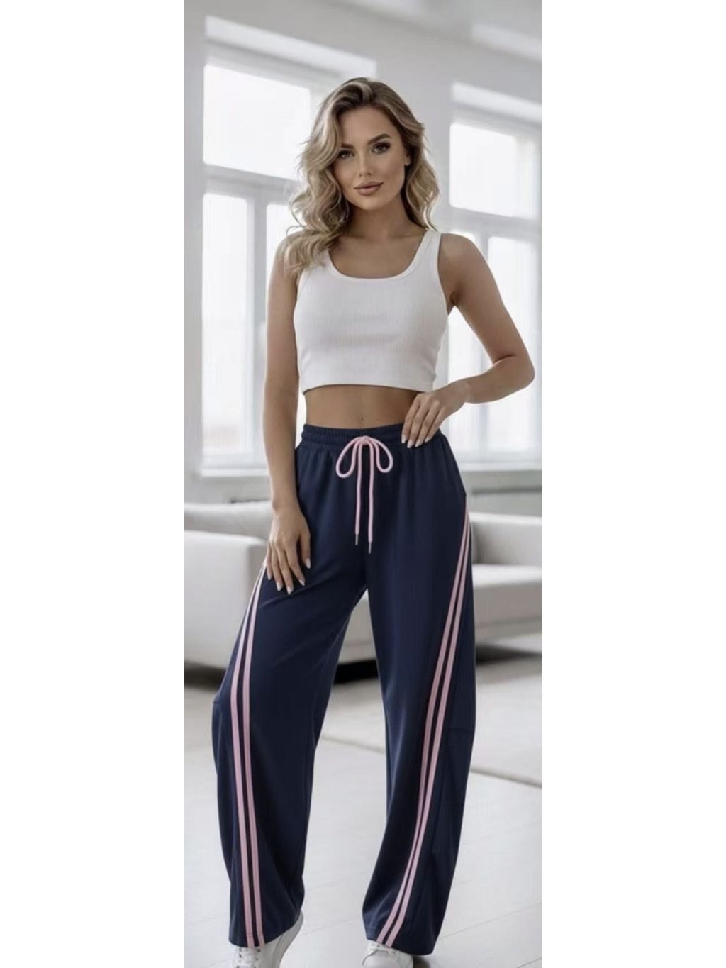 Stylové a pohodlné dámské kalhoty se širokými nohavicemi a bočními proužky jsou ideální pro každodenní nošení i volný čas. Díky pružnému pasu se šňůrkou se krásně přizpůsobí postavě a zároveň poskytují maximální komfort.