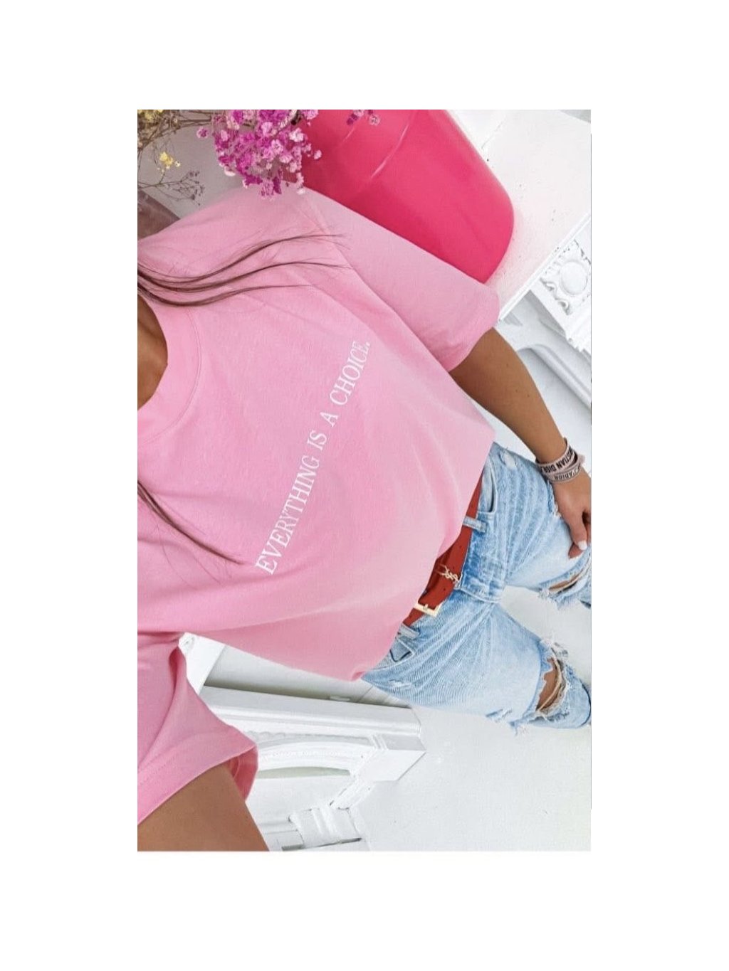Stylové dámské tričko s moderním potiskem “Everything is a choice.” je perfektní kousek do každodenního outfitu. Díky jednoduchému střihu se skvěle kombinuje s džínami, kraťasy i sukní a hodí se jak pro casual styl, tak pro pohodový městský look.