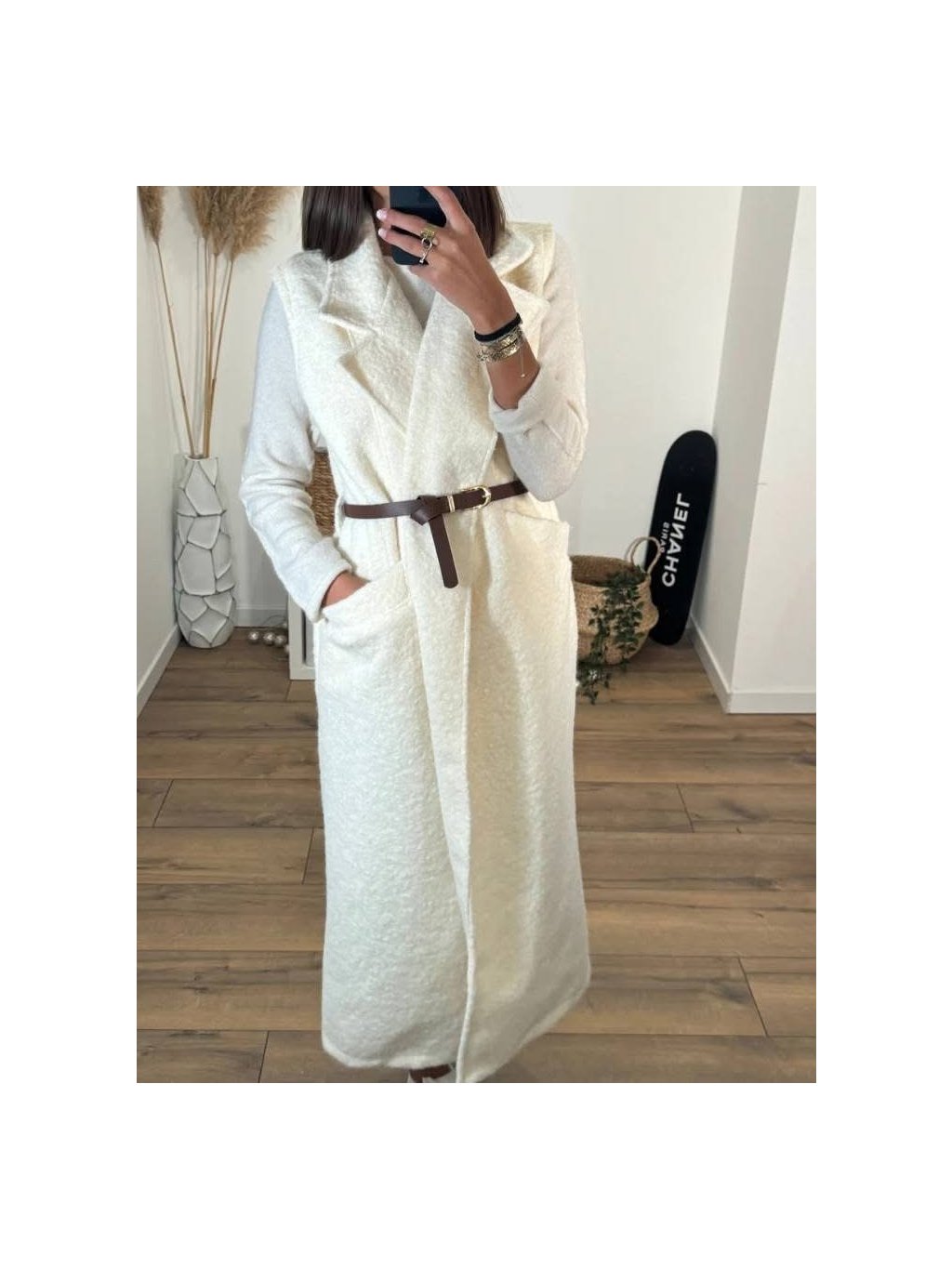 Stylová dámská vesta bez rukávů v krémové barvě, ideální pro podzimní a zimní styling. Je vyrobena z měkkého, hřejivého materiálu s jemným chlupem, který působí luxusně a skvěle drží tvar.