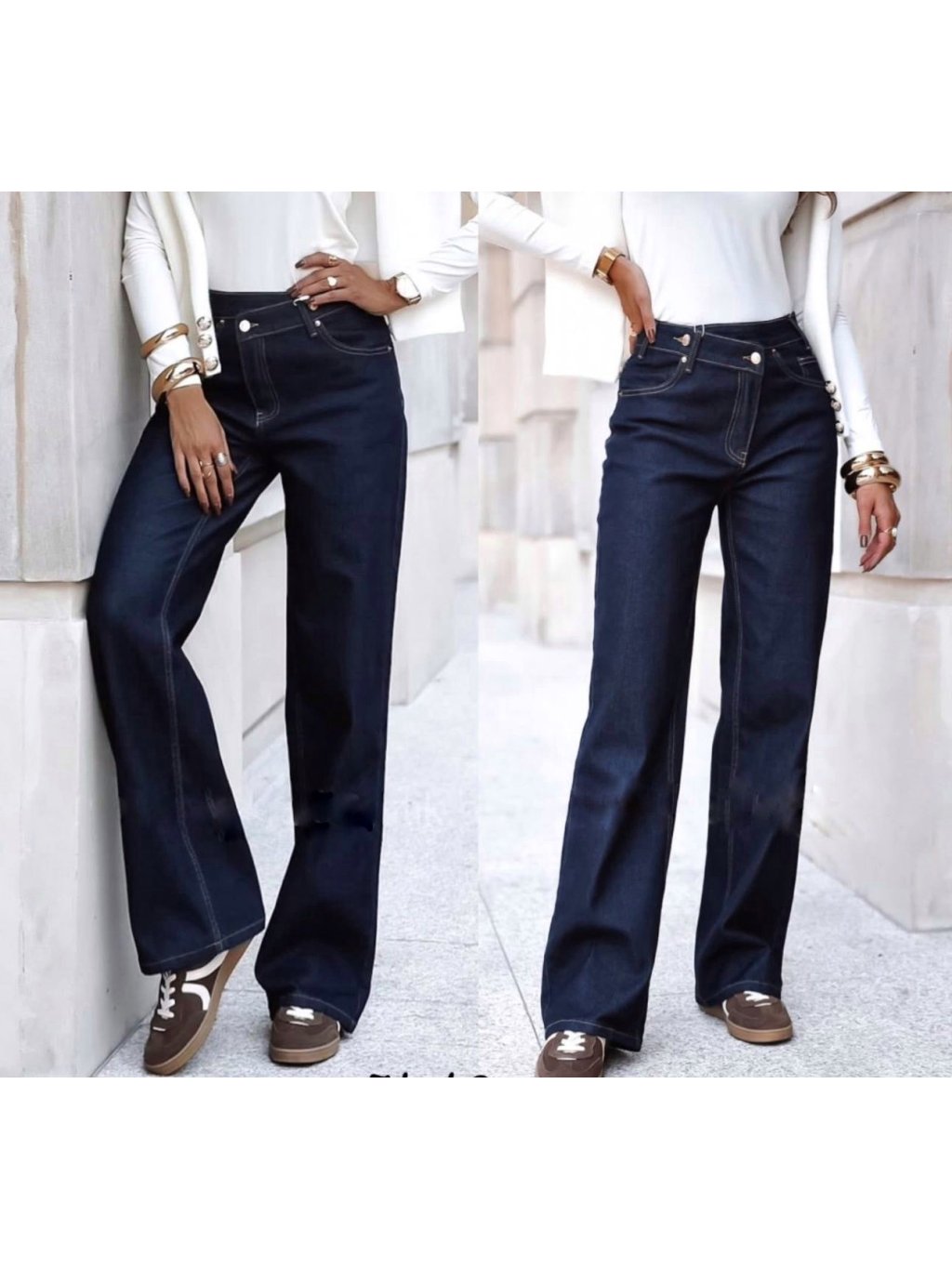 Stylové džíny s širokou nohavicí, které kombinují pohodlí a eleganci. Vyšší pas krásně zvýrazní siluetu a zpevní oblast břicha, zatímco volnější střih nohavic zajistí maximální komfort i volnost pohybu. Klasická tmavě modrá barva se skvěle kombinuje s elegantními i sportovními kousky.