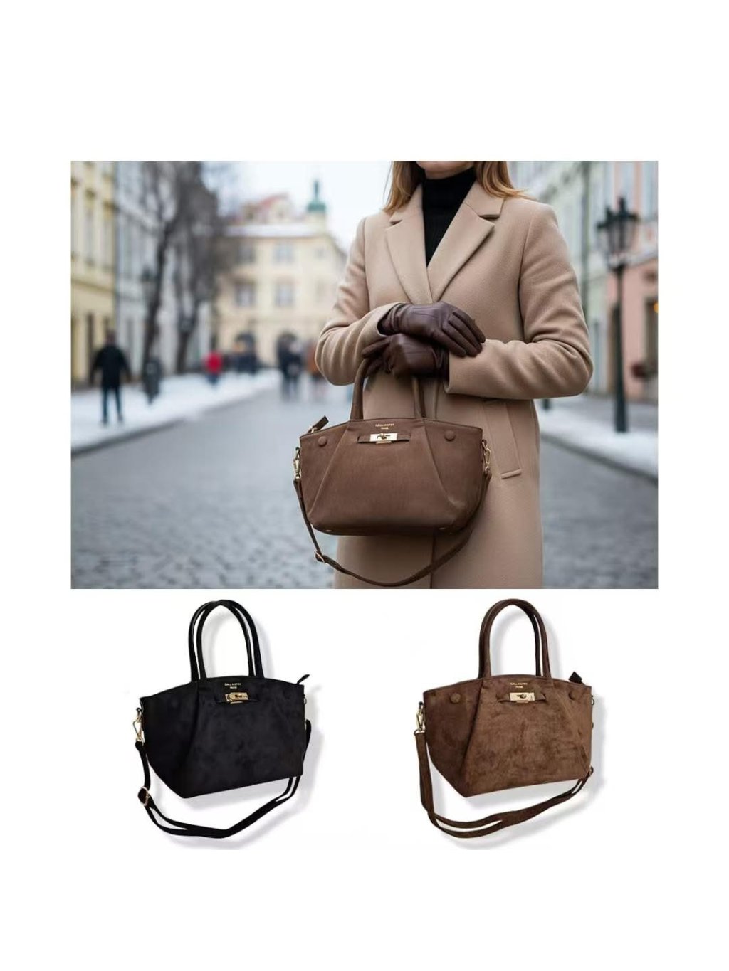 Stylová kabelka z velmi příjemné broušené kůže, která si získá pozornost hned na první pohled. Kvalitní zpracování a dovoz z Francie zaručuje elegantní vzhled i dlouhou životnost.