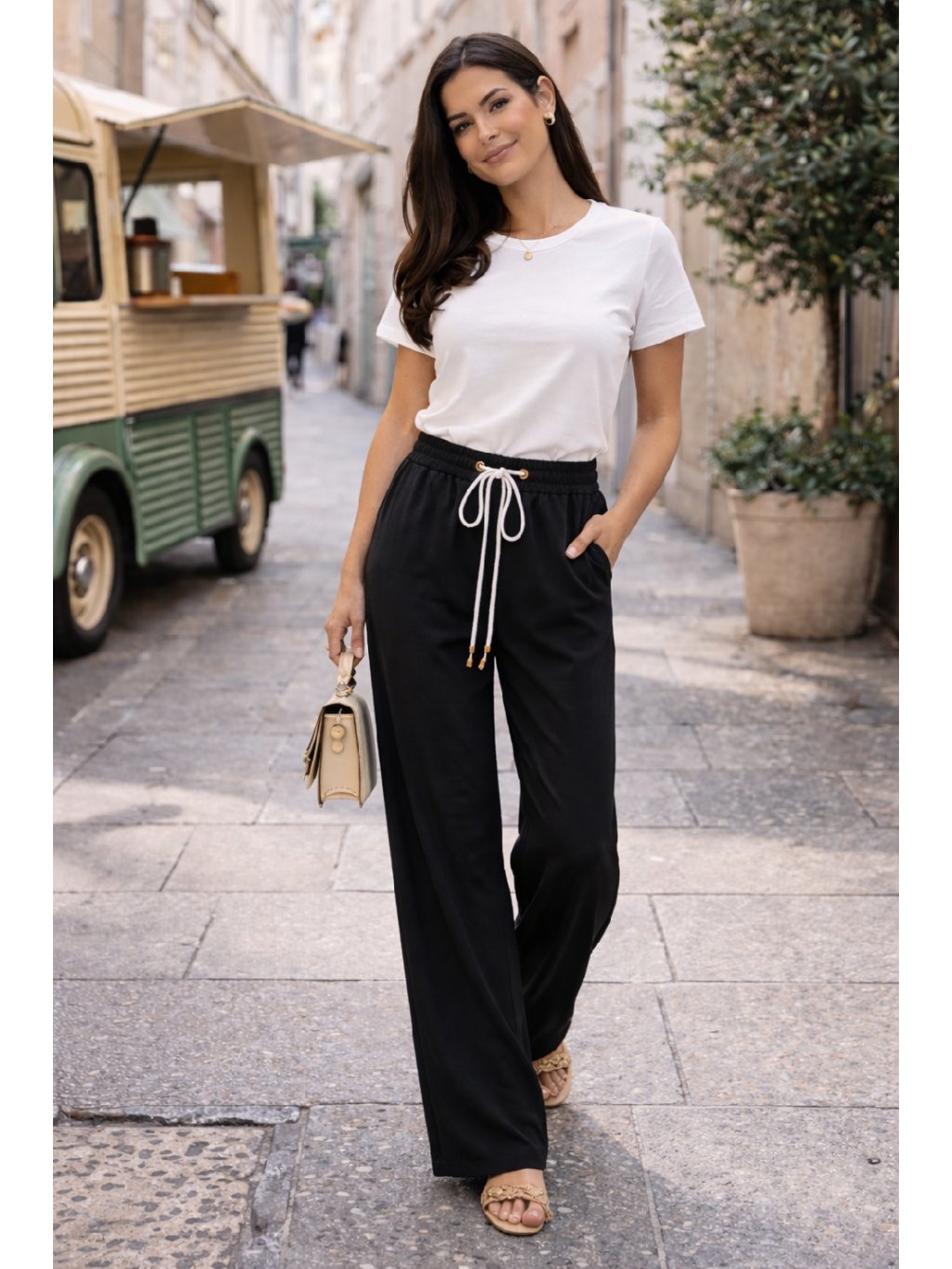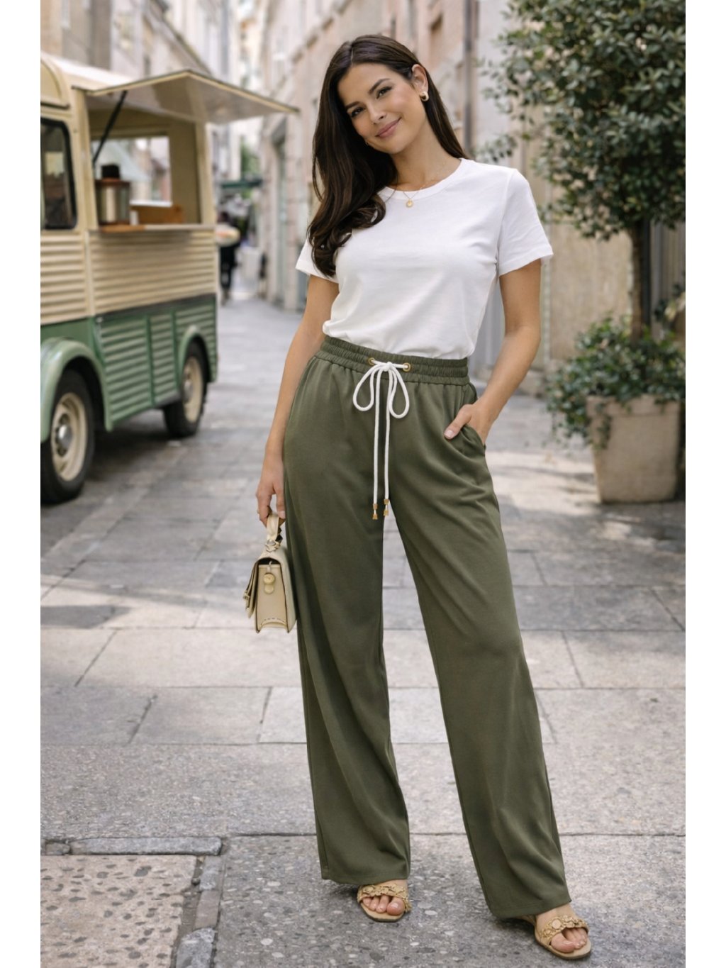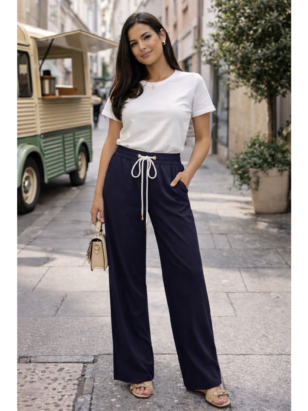 Stylové a maximálně pohodlné dámské kalhoty s volnými nohavicemi, které jsou ideální na každodenní nošení. Díky elastickému pasu se šňůrkou se krásně přizpůsobí postavě a poskytují maximální komfort po celý den.