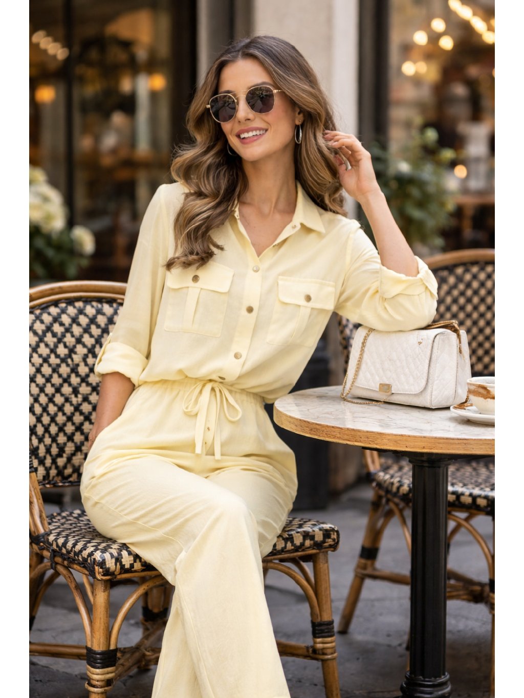 Stylový a pohodlný košilový komplet, který si zamiluješ pro jeho univerzálnost a nadčasový střih. Volnější košile se zapínáním na knoflíky a praktickými kapsami je doplněna o kalhoty s pružným pasem, díky čemuž komplet krásně sedí různým typům postav. Stažení v pase zvýrazní siluetu a zároveň zaručuje maximální komfort po celý den.