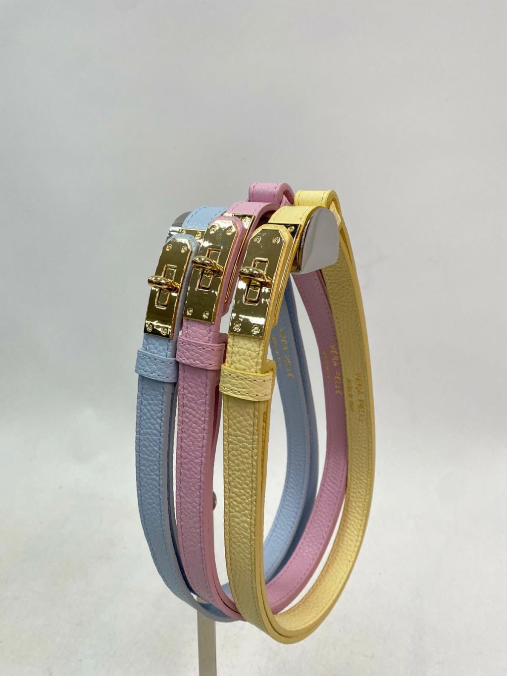 Elegantní pásek s výraznou zlatou sponou ve tvaru zámku, který pozvedne každý outfit. Vyrobený z kvalitní eko kůže s jemnou strukturou, je ideální doplněk jak k šatům, tak k saku či kabátu. Díky pevnému materiálu a preciznímu zpracování si zachovává tvar a dlouhou životnost.