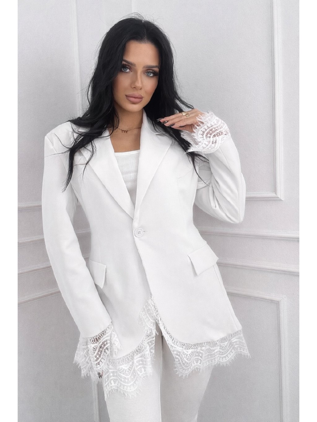 Elegantní a výrazné sako, které zaujme na první pohled. Precizně zpracovaný střih je doplněn o jemné krajkové detaily na rukávech i spodním lemu, díky kterým působí velmi luxusně a žensky. Ideální volba na večerní události, společenské akce i stylový outfit do města.