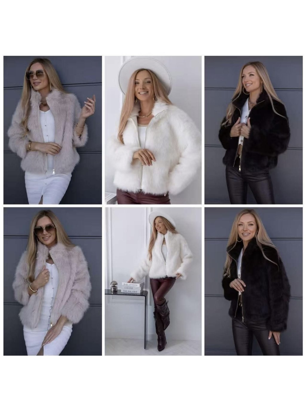 Hřejivá kožíšková bunda na zip z měkké umělé kožešiny. Lehký oversize střih, stojáček a podšívka pro pohodlné nošení po celou zimu.
