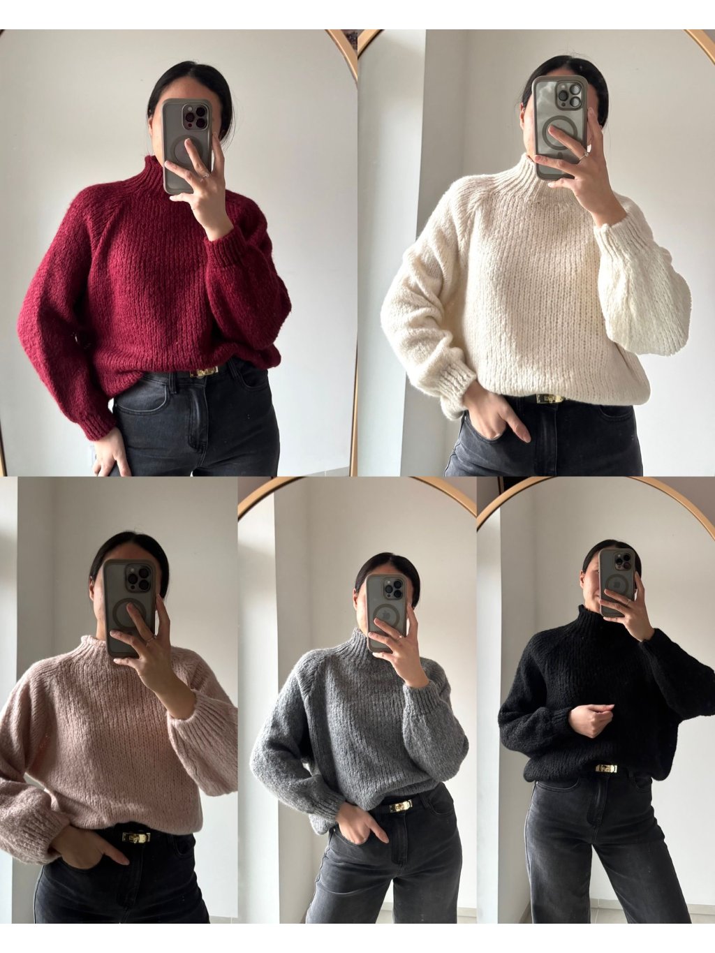 Měkoučký svetřík se stojáčkem a lehkým balónovým rukávem