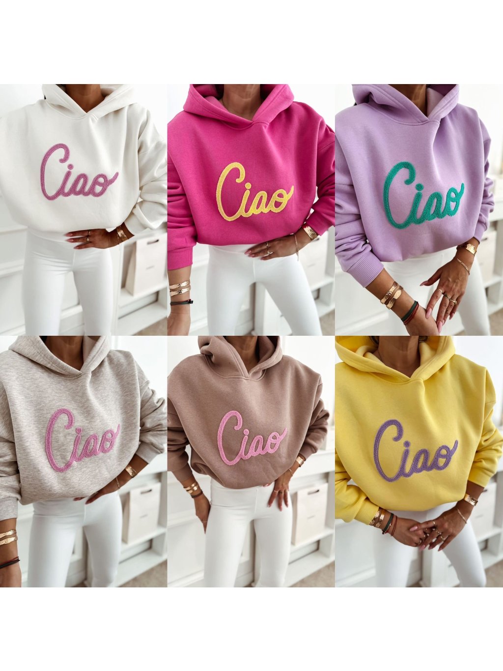 Stylová mikina s výrazným plastickým nápisem CIAO, který je dominantou celého kousku. Moderní, lehce oversize střih krásně sedí postavám od velikosti S až po L a zaručuje maximální pohodlí při nošení.