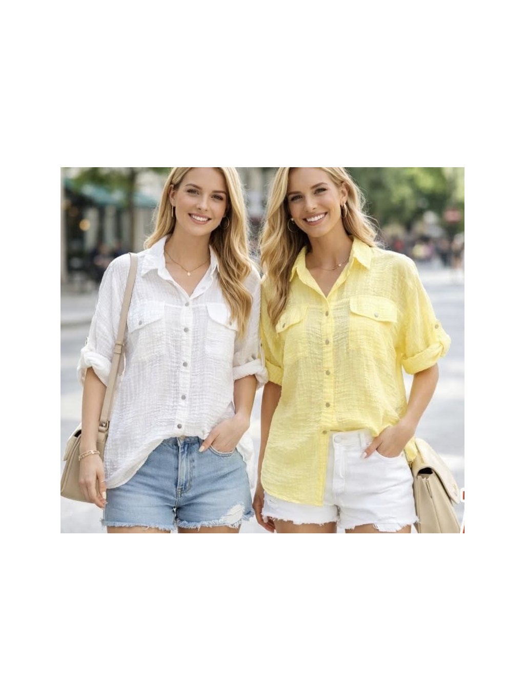 Vzdušná, jemná a dokonale pohodlná. Mušelínová košile TONY je ideální kousek na jaro, léto i teplý podzim. Díky volnějšímu střihu krásně sedí velikostem S–L a působí uvolněně, ale stále žensky.