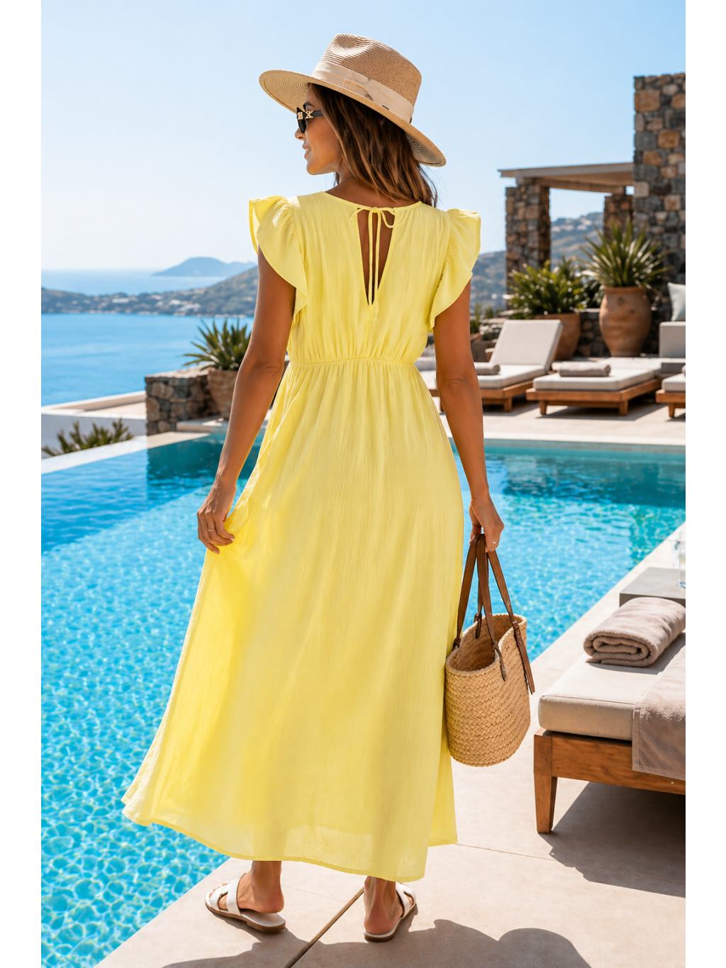 Volný střih krásně sedí na postavě a přizpůsobí se díky pružnému pasu. Romantické volánové rukávy a ženský výstřih dodávají šatům jemný a elegantní vzhled.