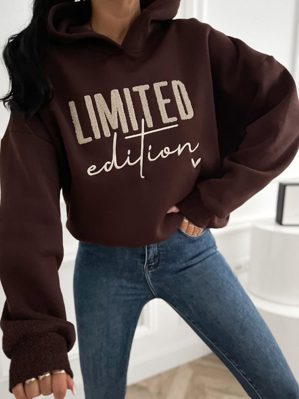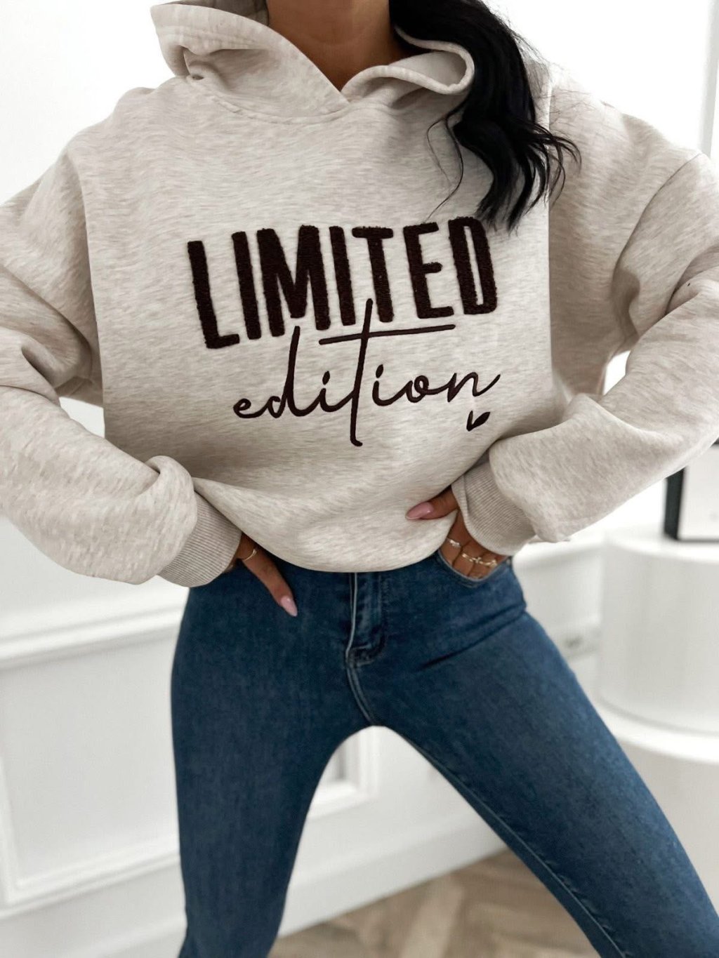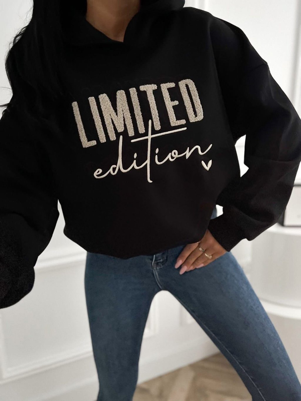 Stylová mikina s nápisem „Limited edition“ si získá každého milovníka pohodlí a měkkosti. Vnitřní strana je zateplená jemným fleecem, který krásně hřeje i v chladnějším počasí. Mikina má volnější střih, kapuci, žebrované lemy na rukávech a spodním okraji. Detaily v kontrastní barvě dodávají jedinečný vzhled.
