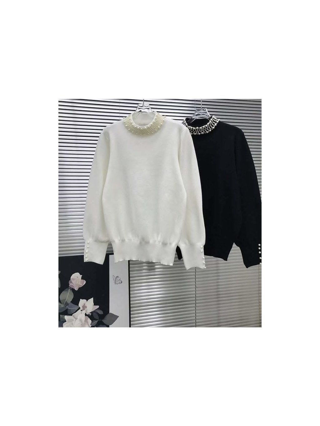 Jemný pletený svetr s bohatě zdobeným perlovým stojáčkem, který dodá každému outfitu šmrnc. Rukávy jsou zakončené manžetou s ozdobnými perličkami, díky čemuž svetr působí luxusně i bez dalších doplňků. Pohodlný, měkký úplet se příjemně nosí celý den – hodí se jak k džínům, tak k elegantní sukni nebo kalhotám. Ideální na slavnostní příležitosti, do práce i na běžné nošení, kdy chcete vypadat upraveně a chic bez námahy.