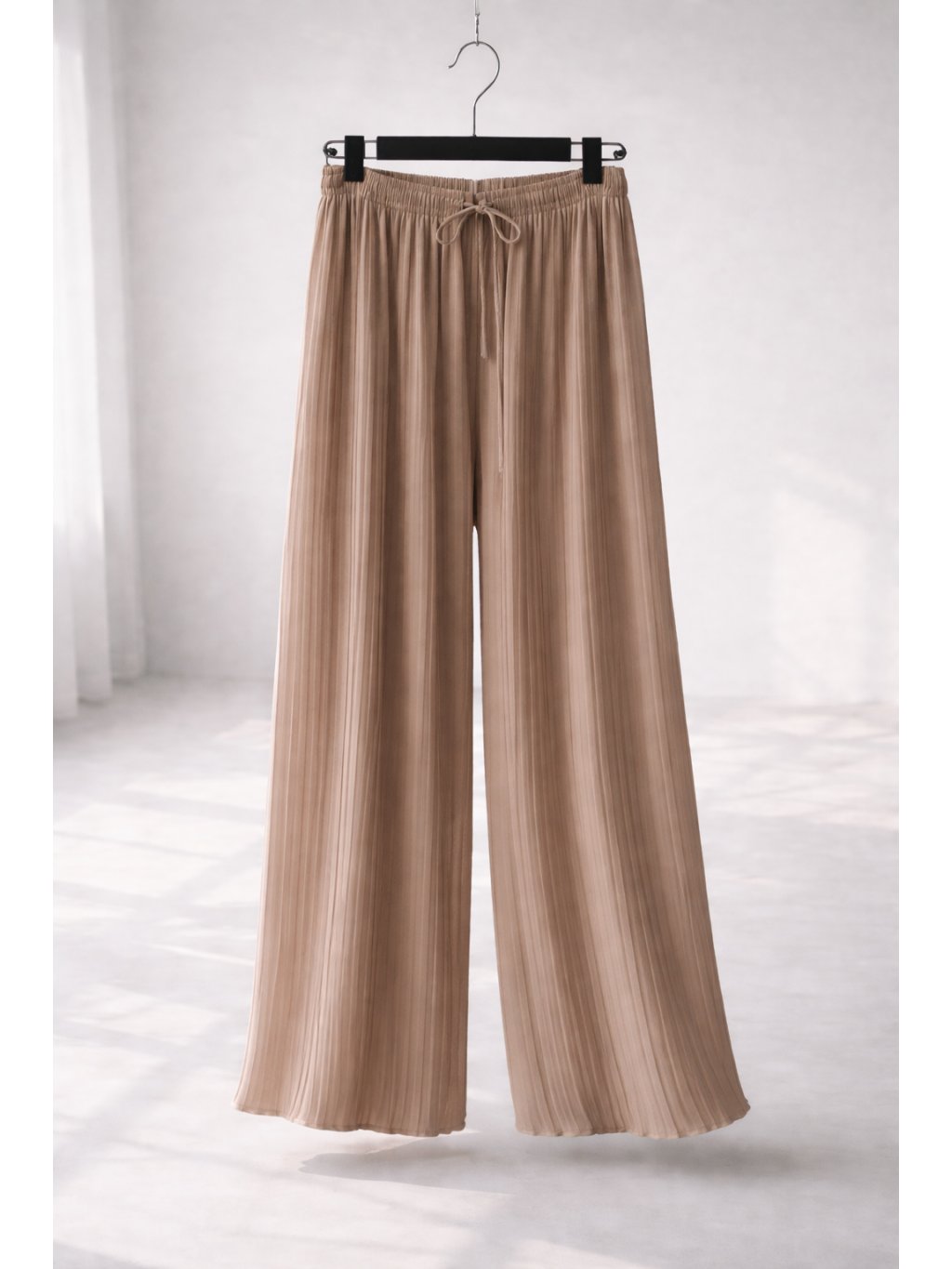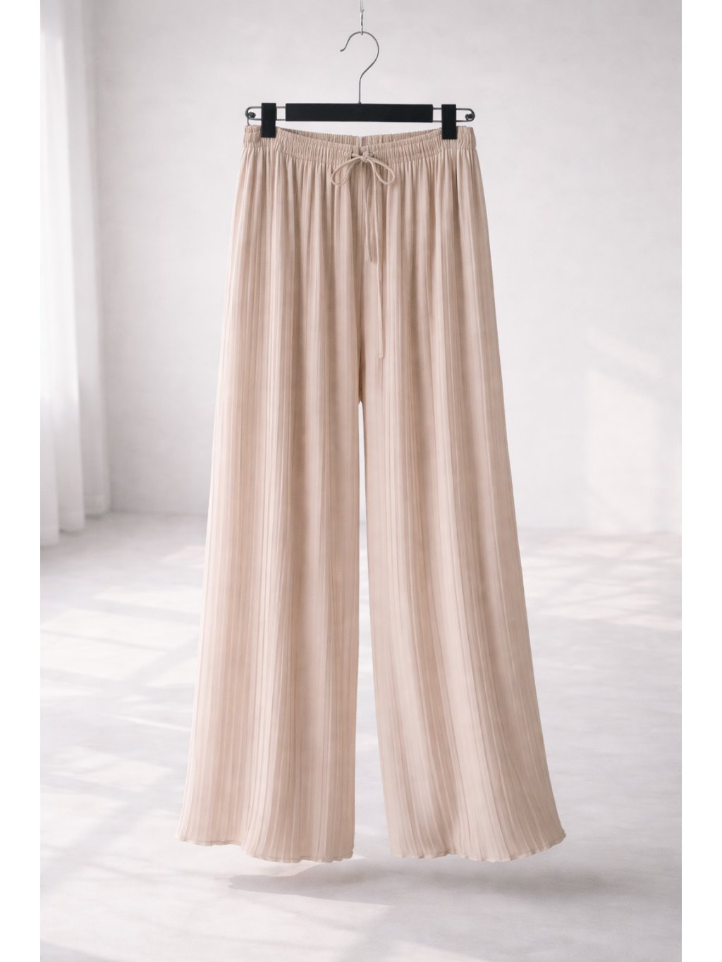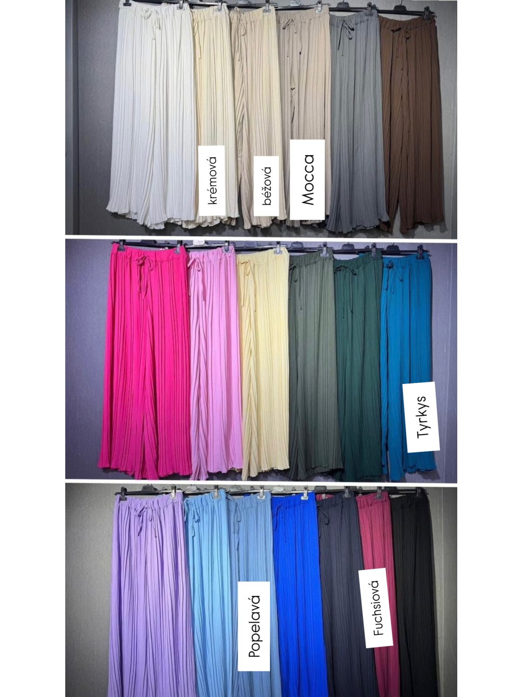 Lehké a elegantní plisované kalhoty, které jsou ideální na každodenní nošení i letní outfit do města nebo na dovolenou. Díky vzdušnému materiálu jsou velmi pohodlné a příjemné na těle. Široké nohavice krásně splývají a vytváří moderní, ženský vzhled.