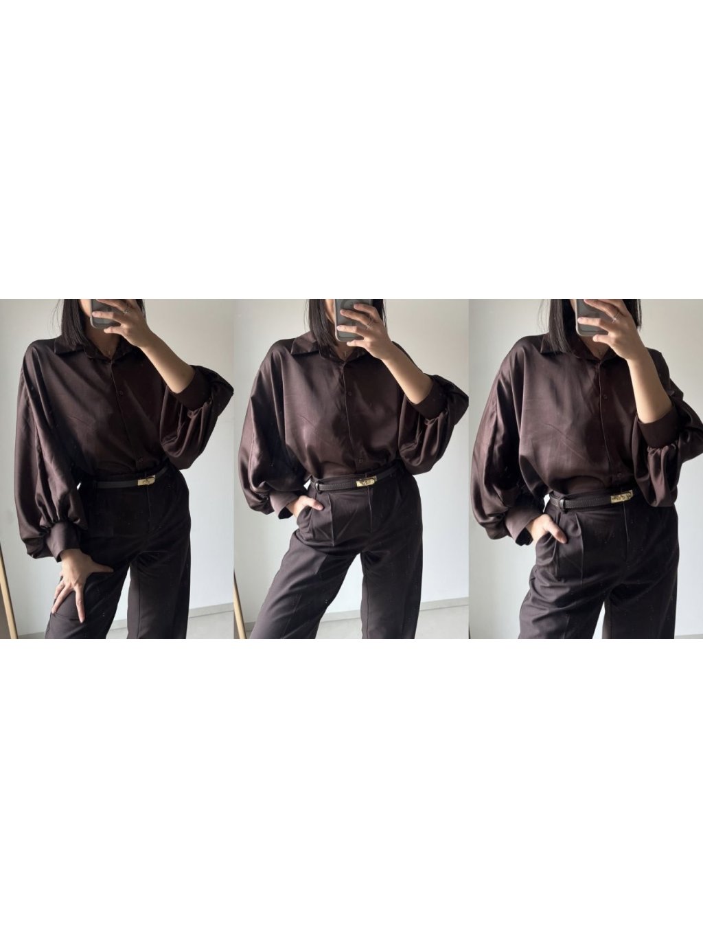 Saténová košile s balónovými rukávy