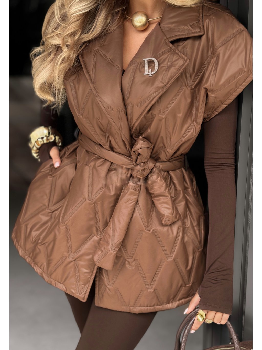 Tato prošívaná vesta na knoflíky je ideální volbou pro chladnější dny. Tento model má límec a funkční boční kapsy. Má také poutka na pásek a součástí je i pásek.