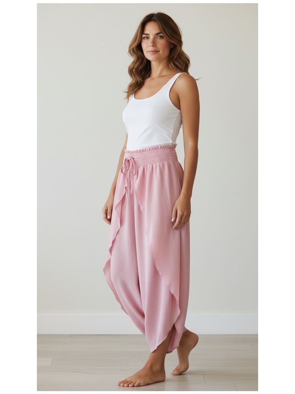 Díky vysokému pružnému pasu perfektně sedí a přizpůsobí se postavě. Skvěle se kombinují s topy, halenkami i basic tričky – ideální na léto, dovolenou i běžné nošení.