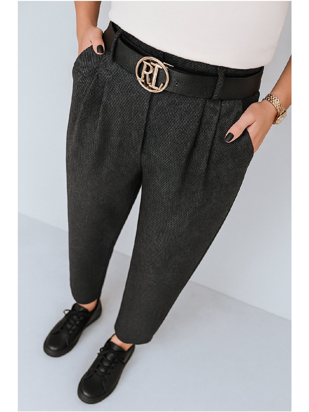 Stylové a pohodlné kalhoty, které si zamilujete na každý den i do práce. Nadčasový střih s jemnými záhyby krásně prodlužuje siluetu a díky elastickému pasu se perfektně přizpůsobí postavě. Součástí kalhot je elegantní pásek, který dodává outfitu moderní a upravený vzhled.