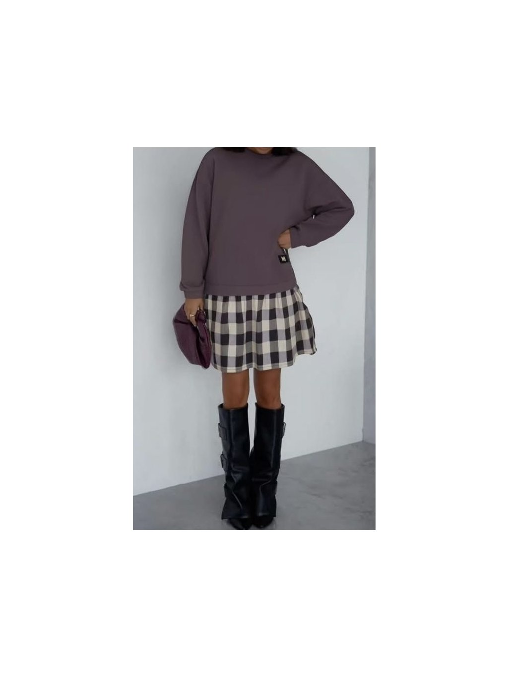 Oversized mikinošaty s kostkovanou sukní – velikost M–XL