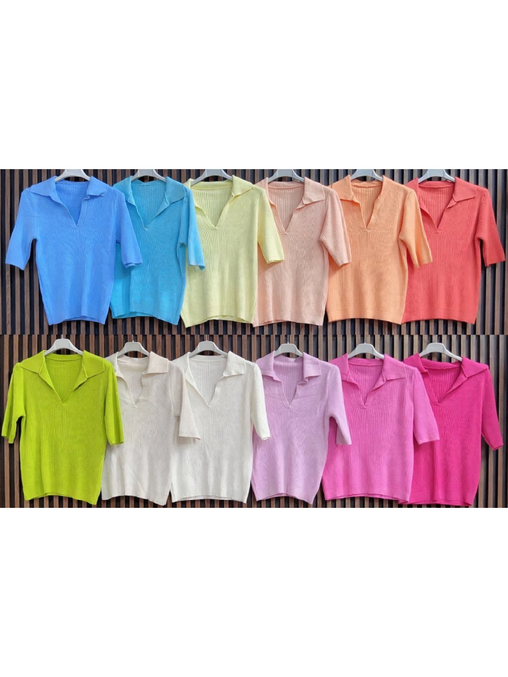 Elegantní a pohodlný žebrovaný svetřík s krátkým rukávem a výstřihem do „V“ s límečkem. Díky pružnému materiálu se krásně přizpůsobí postavě a je vhodný jak na běžné nošení, tak i k elegantnějším outfitům. Skvěle se kombinuje s džínami, sukní i kalhotami s vyšším pasem.