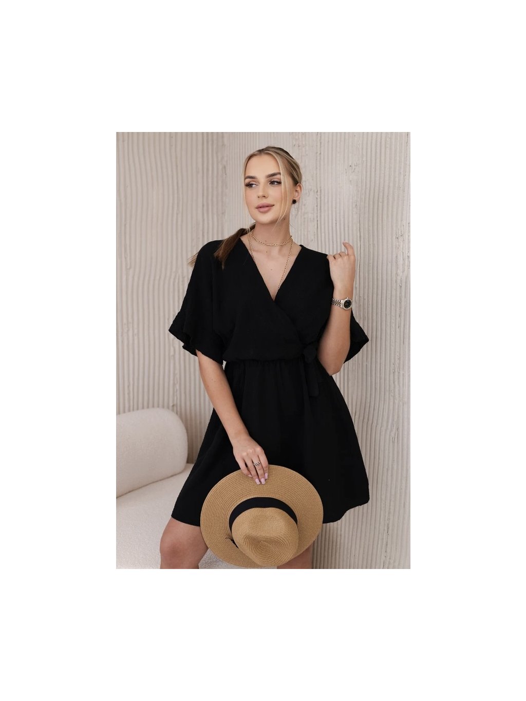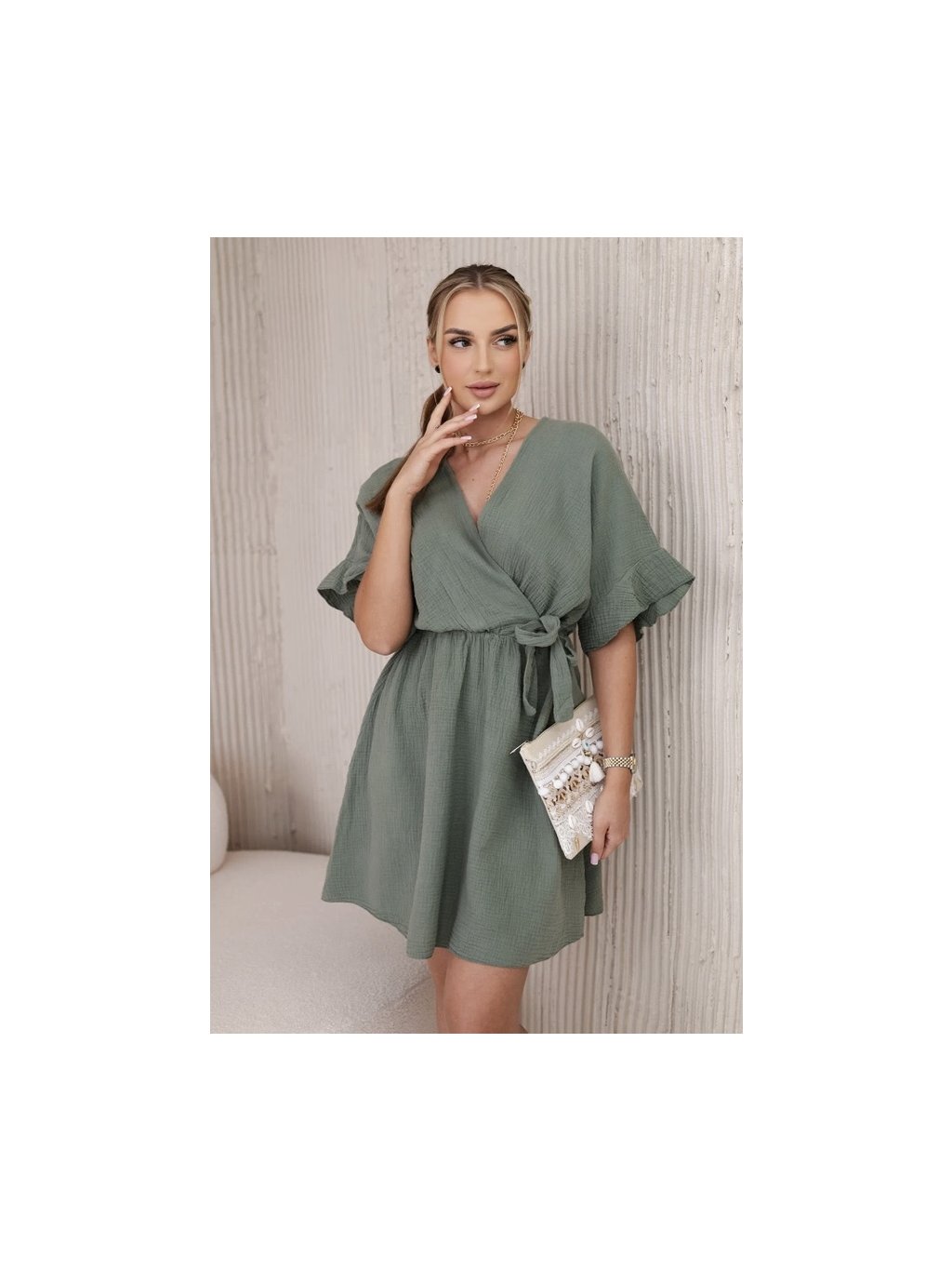 Vypasované mušelínové šaty jsou perfektní volbou pro ty, kteří chtějí spojit lehkost a ženský vzhled v jednom. Tyto šaty, vyrobené z jemného mušelínu, jsou extrémně pohodlné a vzdušné, ideální pro teplé dny. Její vypasovaný střih zvýrazňuje postavu, dodává jí eleganci a ženský šarm. Ideální pro mnoho příležitostí, od letních procházek po setkání s přáteli nebo romantická schůzka. Vypasované mušelínové šaty se díky své všestrannosti a pohodlí stanou oblíbeným prvkem vašeho šatníku. Velikost je univerzální a bude vhodná pro ženy, které nosí velikost S, M nebo L.