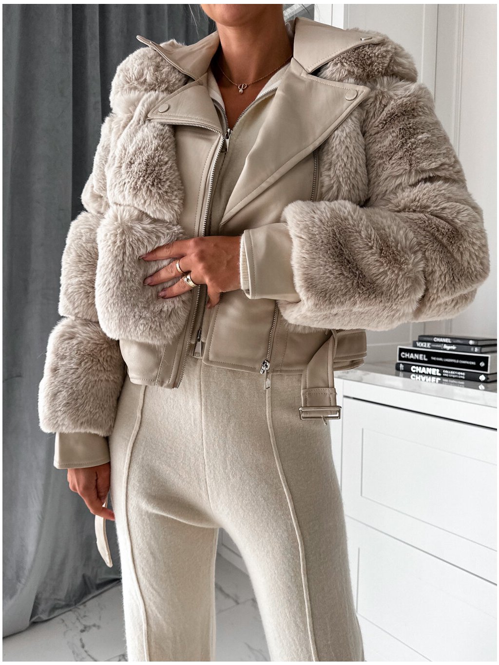 Bunda Zandra ecru je kombinací motorkářské bundy s ozdobnou kožešinou, která je skvělou volbou pro chladnější dny. Tento model se vyznačuje módním střihem a kratším střihem.